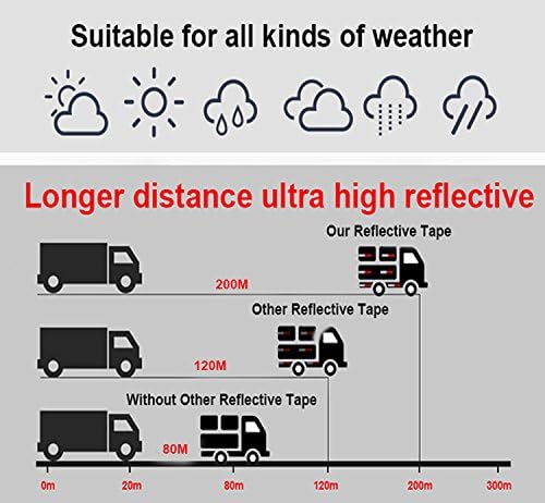 - 【Water-proof】Our reflective safety sticker is water-proof,weather-proof and pesist,strong self-adhesive backing that is weather and water resistant for a long lasting hold in even the harshest elements.The longer you use our tape the more sticky it gets to vehicle's surface.So feel free to wash your vehicle and don't worry about fading or peeling off,our high quality reflector tape will last for years!