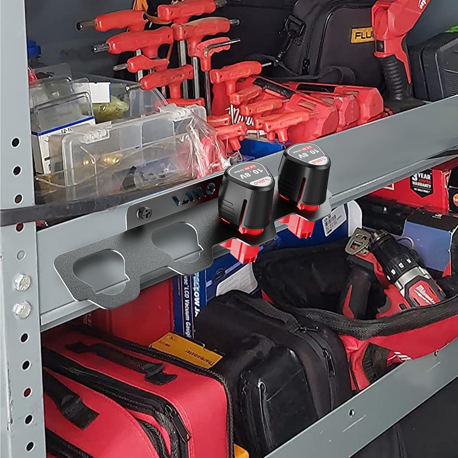 - PERFECT BATTERY STORAGE RACK: This Battery Holder is fully compatible with Milwaukee M12 12V batteries, and can firmly fix your battery pack without dropping. It can store four batteries at the same time with enough space between them.