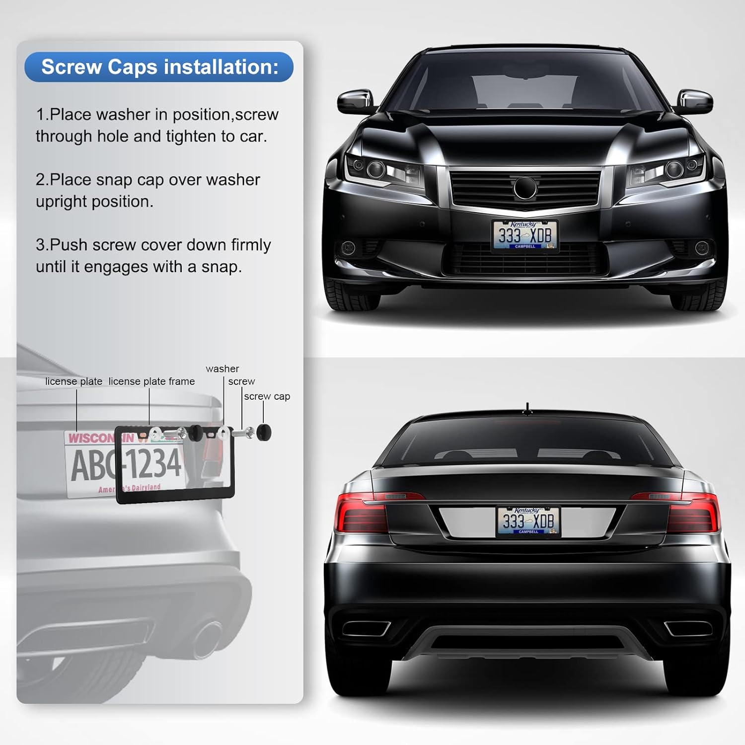 - EASY TO INSTALL: The value pack includes 2 pieces of license plate frames, accessories, screw caps, anti-theft screws, and matching screwdrivers.