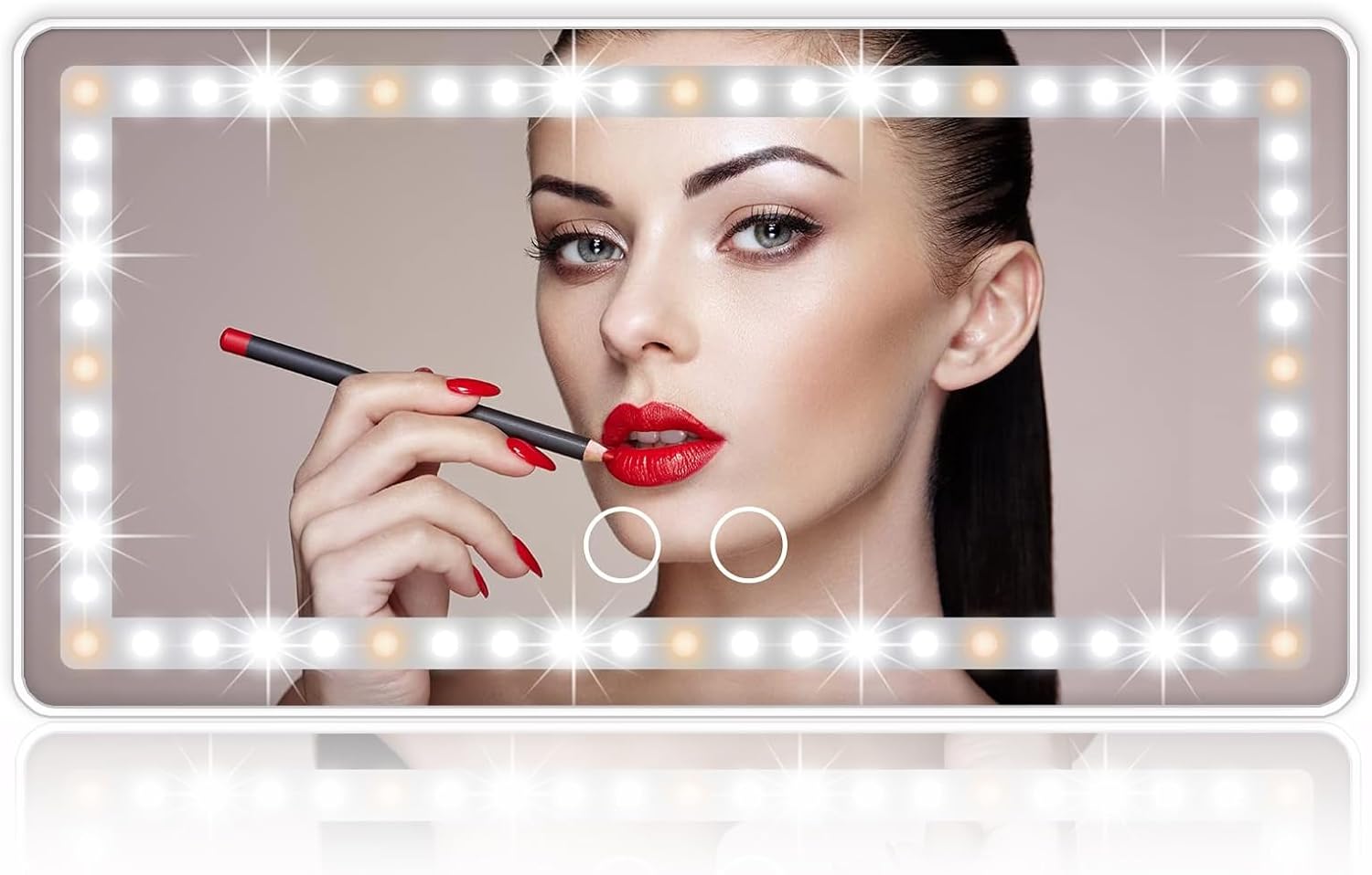 - DIMMABLE COLOR LED LIGHTS - Your mirror goes in the sun visor, so the light is even on your face. You can doing your makeup with this mirror with flawless results because of the impeccable lighting. Including 3 color lighting modes and stepless dimming function, which can be dimmed or intensified for your needs. Long press for dimming according to what you need.