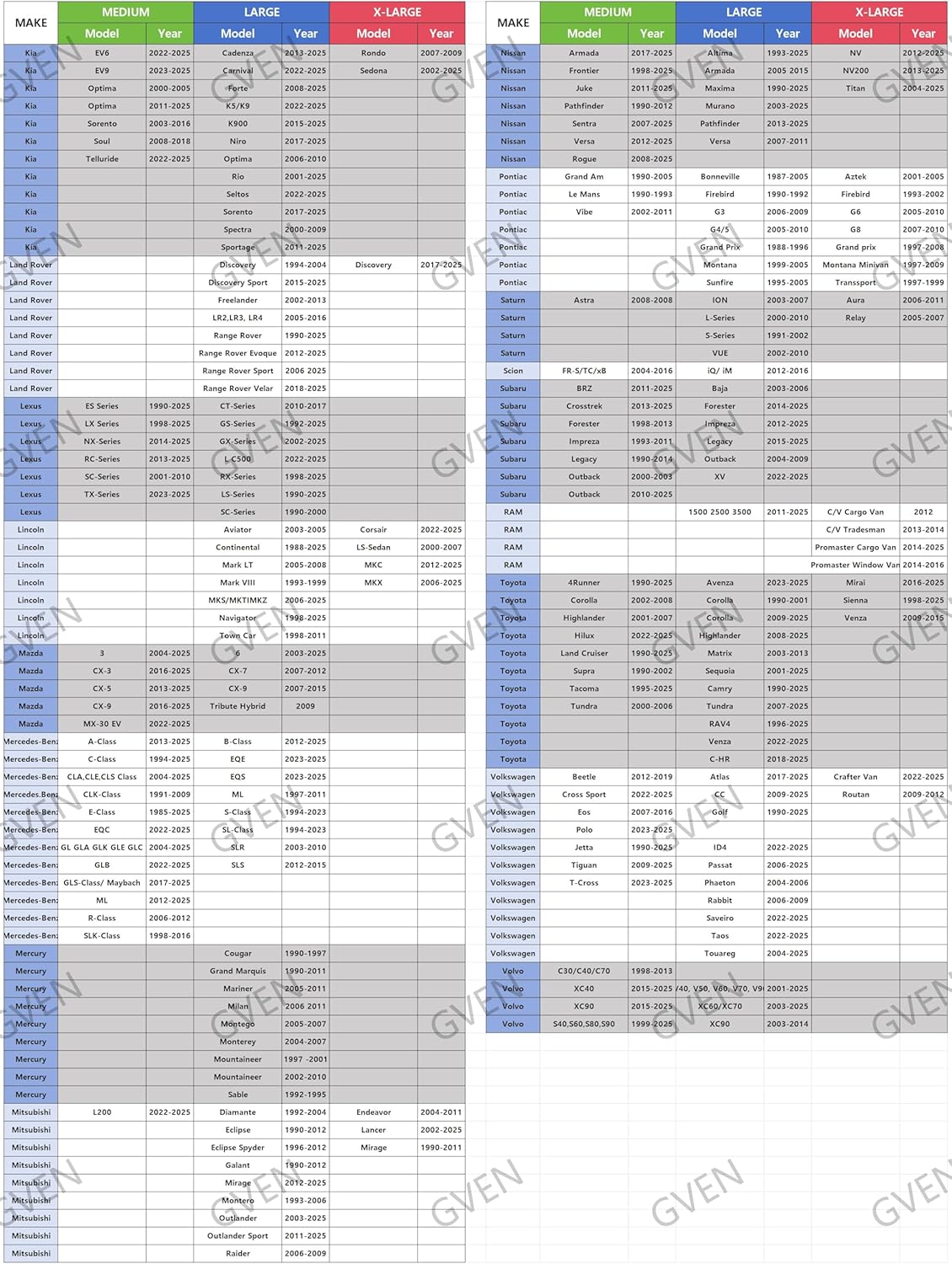 - Size- Gven windshield sun shade is L 59" x 31.5" W. Please check porduct page image 3&4 to choose the right size for your car. Fits most compact and sports cars with smaller windshields.