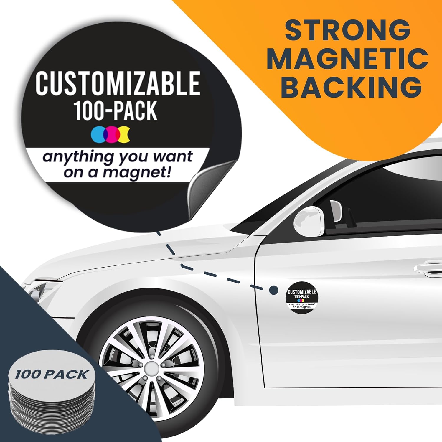 Magnet Me Up Customizable 30 Mil Round Magnet- 5”, 100 PK Weatherproof Car Magnet for Businesses, Sports Teams, Fundraiser, Personal Expression- Custom Text & Logo- Strong Magnetic Vinyl for Vehicles