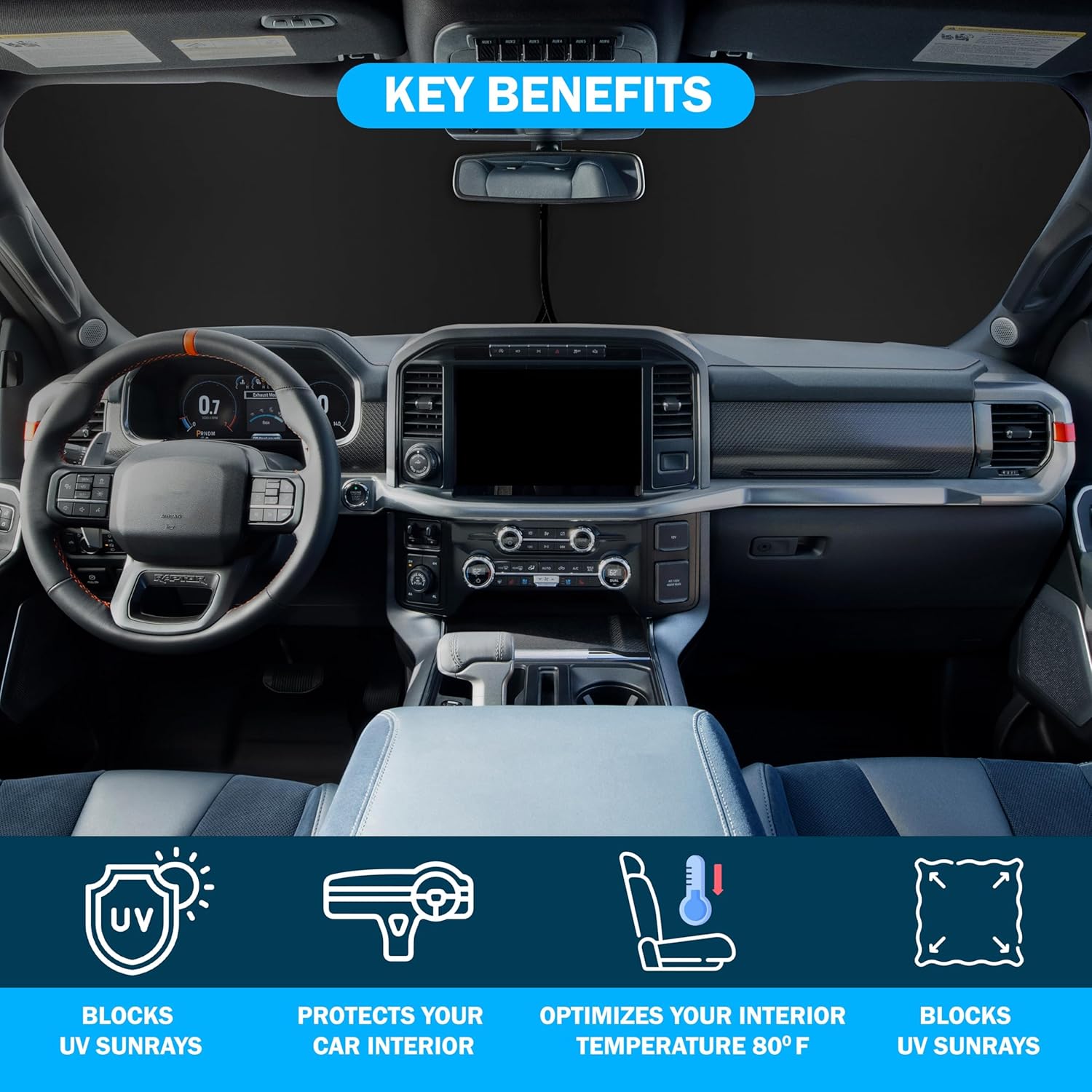 - Ultimate Heat & UV Protection: Autovir truck windshield sun shade blocks harmful UV rays, reduces interior heat, and prevents dashboard cracking and fading and keeps your truck interior cool which is ideal for pickup trucks, semi-trucks, and SUVs.