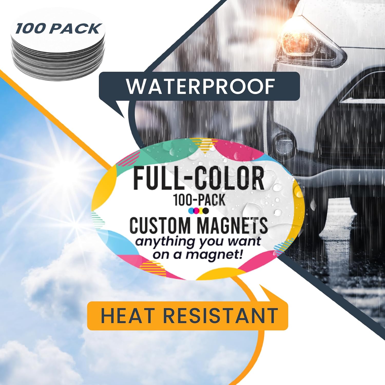 Magnet Me Up Customizable 4x6 Inch Oval Magnet Pack, 100 Piece, Custom Magnet for Businesses, Personal Use, Choose Your Text, Upload Image, Magnetic Vinyl for Any Magnetic Surface, Crafted in USA