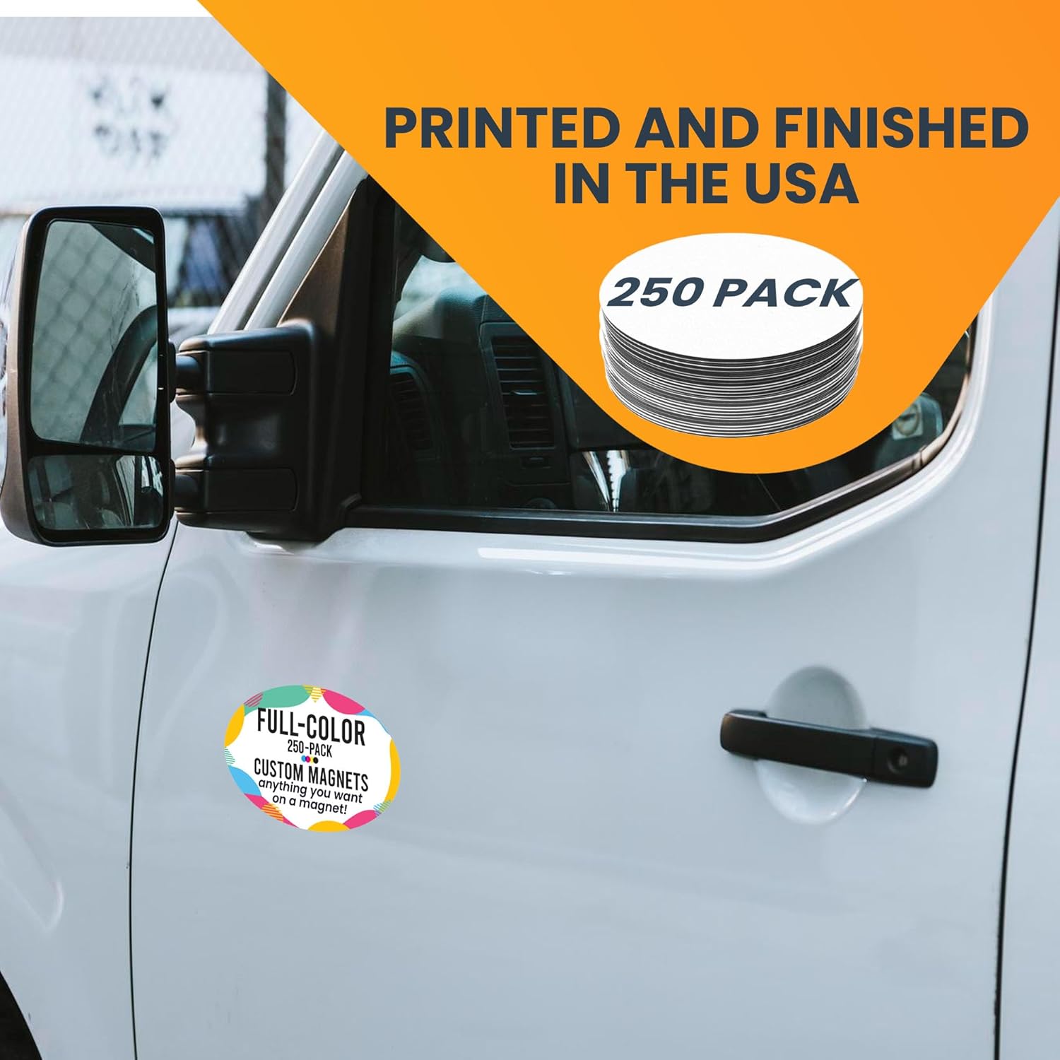 - Choose your size; choose your magnet standard size from the dropdown menu to achieve the exact look you desire for your vehicle. Available sizes: 10x3 Inch (1 count) 8x3 Inch (1 count), 5 Inch Round (1 count, 25,50, 100 pcs), 6 inch Round (1 count), 5 Inch Pawprint (1 count), 4x6 Inches Oval (1 count),3.5x2 (25 pcs), 3.5x2 (50 pcs), 3.5x2 (100 pcs), 2x7 dog bone