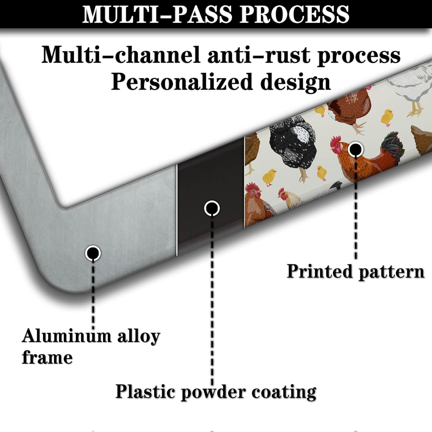 License Plate Covers for Women Multicolor License Plate Frames for Men Chicken Flower Aluminum Metal Car Accessory 2 Pack with Screw Covers Set