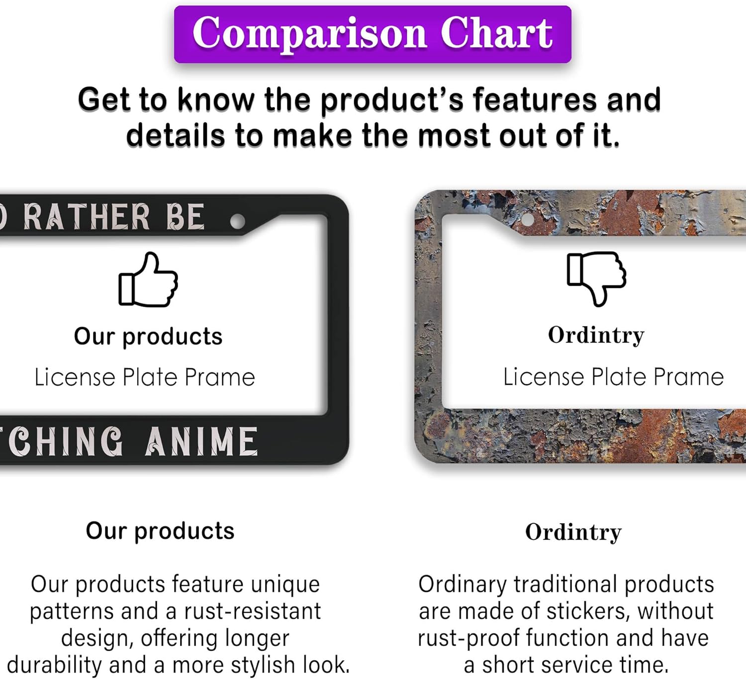 License Plate Cover Black and White License Plate Frames I’D Rather Be Watching Anime Aluminum Metal Car Accessory 2 Pack with Screw Covers Set