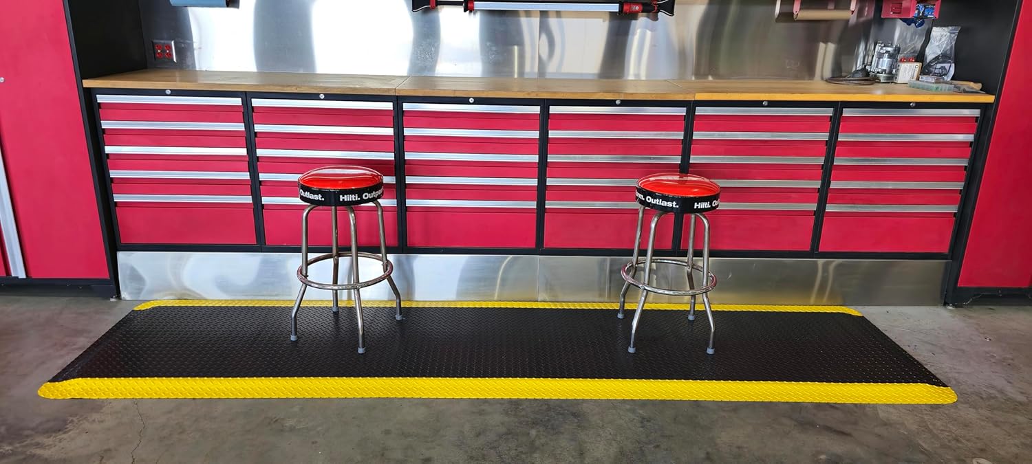 Rhino Mats, American Classic Diamond Anti-Fatigue Mats, Industrial Ergonomic Comfort Standing Mat for Work, Home, Garage, Office, Kitchen or Anywhere (Black/Yellow 1" Thick, 2 FT. x 18 FT.)