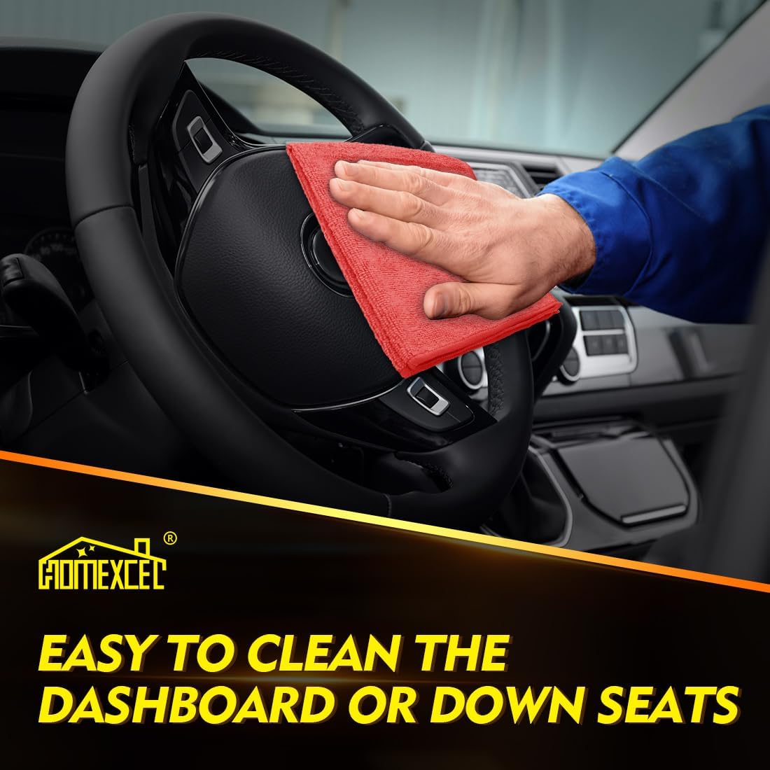 HOMEXCEL Red Microfiber Cleaning Cloth 12 Pack, 12.5 x 12.5 inch Microfiber Towels for Cars, Ultra Absorbent Car Washing Cloth, Lint Free Streak Free Cleaning Rags for Car, Kitchen, and Window