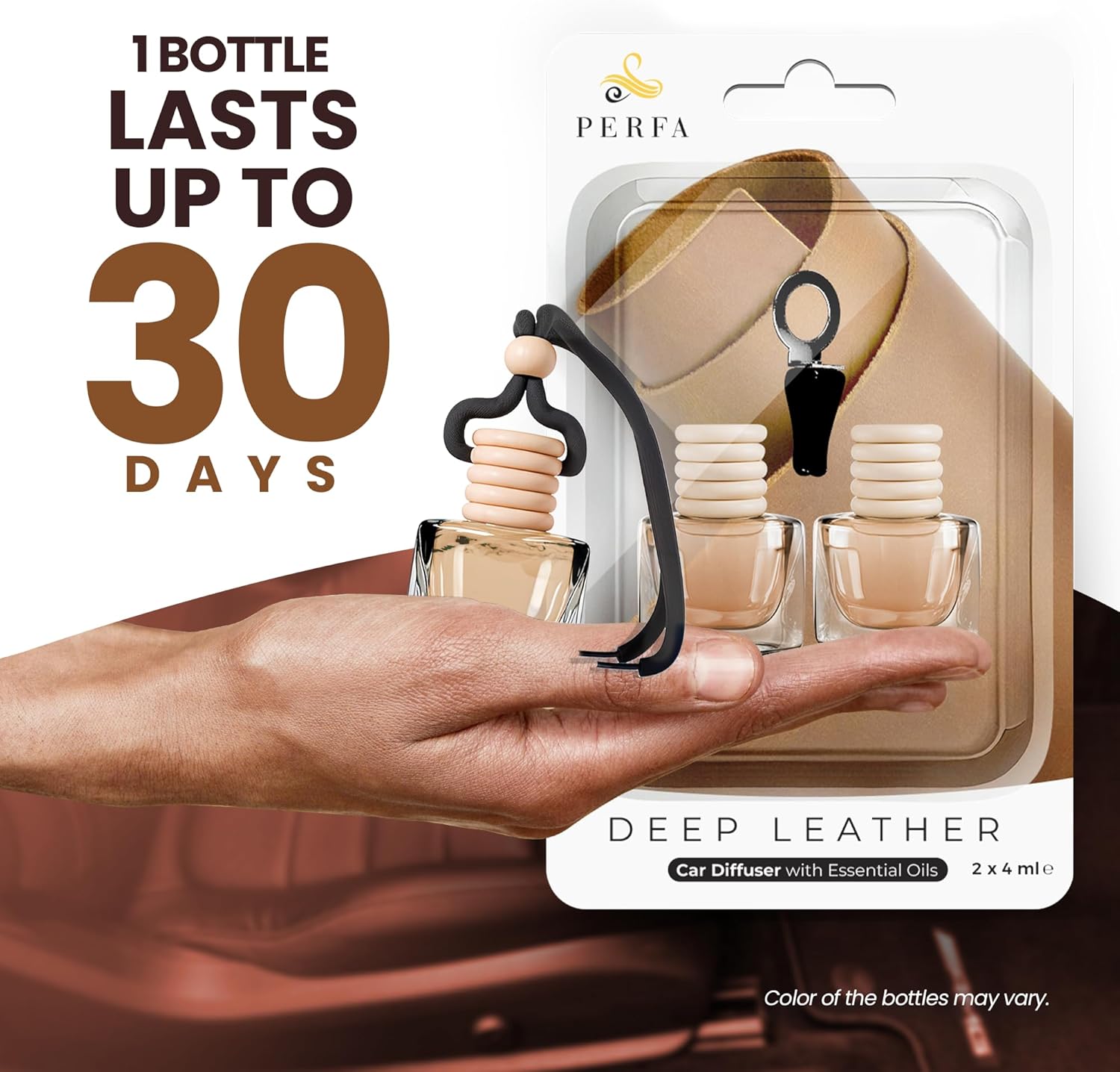 - DEEP LEATHER SCENT - Our car fresheners for men releases the warm aroma of real leather. This car scent diffuser fills your vehicle with a refreshing fragrance, creating a pleasant atmosphere every time you drive. Designed to double as a new car smell air freshener, it also helps eliminate unwanted odors, making it the perfect addition to your collection of car scents.