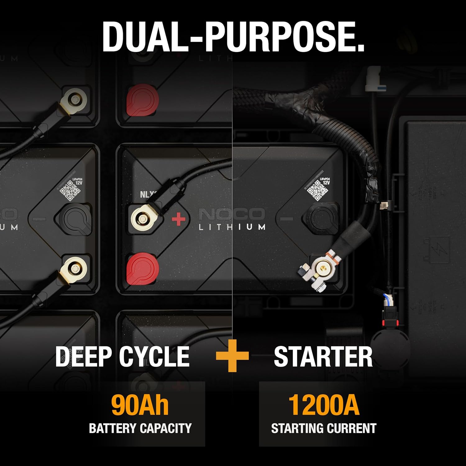 NOCO Lithium NLX24: 12V Dual-Purpose LiFePO4 Lithium-Ion Battery - 90Ah Deep-Cycle and 1200A Group 24 Starter Battery - UL Listed - Built-In Dynamic BMS
