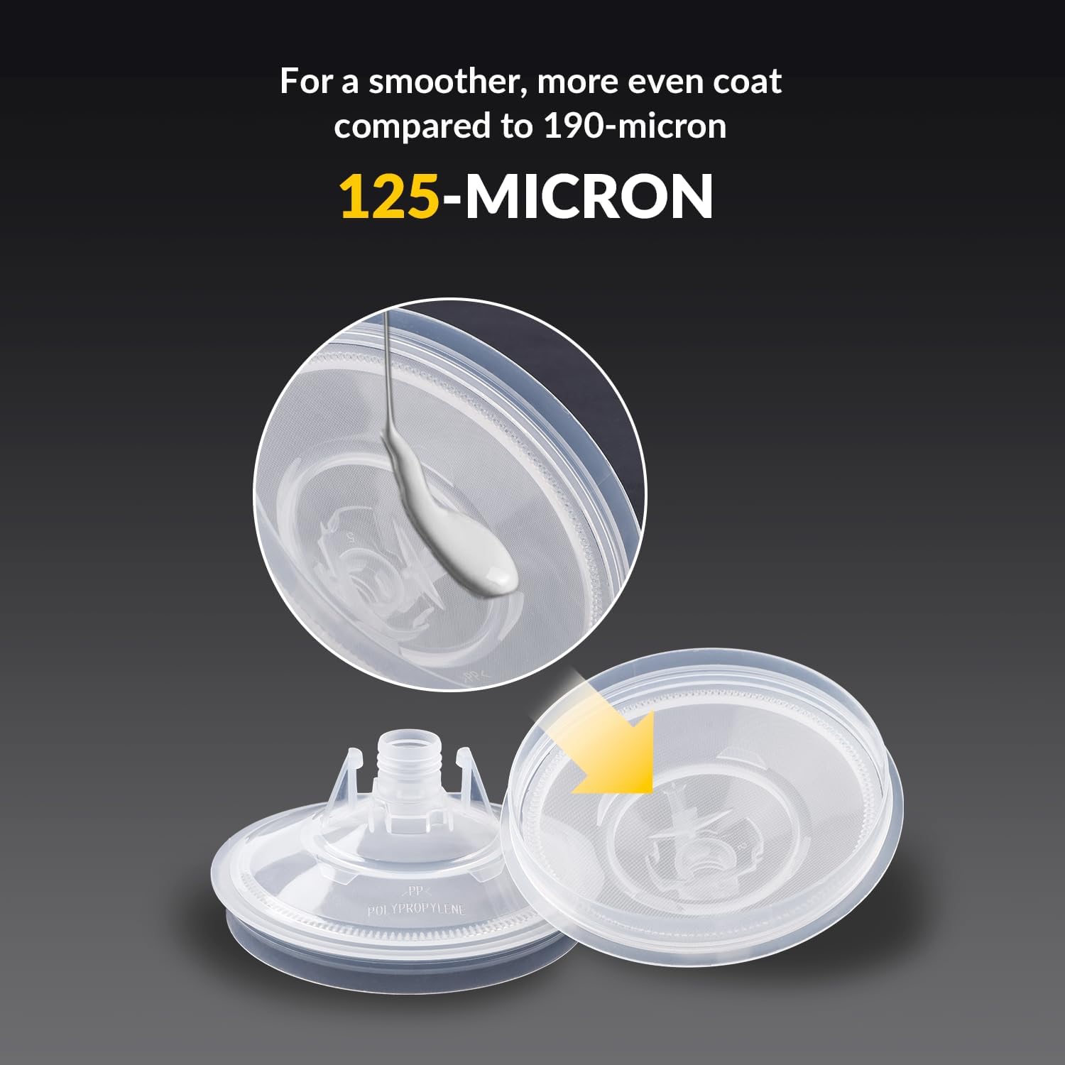 - Fine Filtration: Use our paint cups with lids for a smoother, more even finish. Our cup lids built-in 125 micron filter, which provides finer filtration than 190 micron filter. The disposable paint gun cups system is suitable for all types of paints, primers, epoxies and commercial coatings.