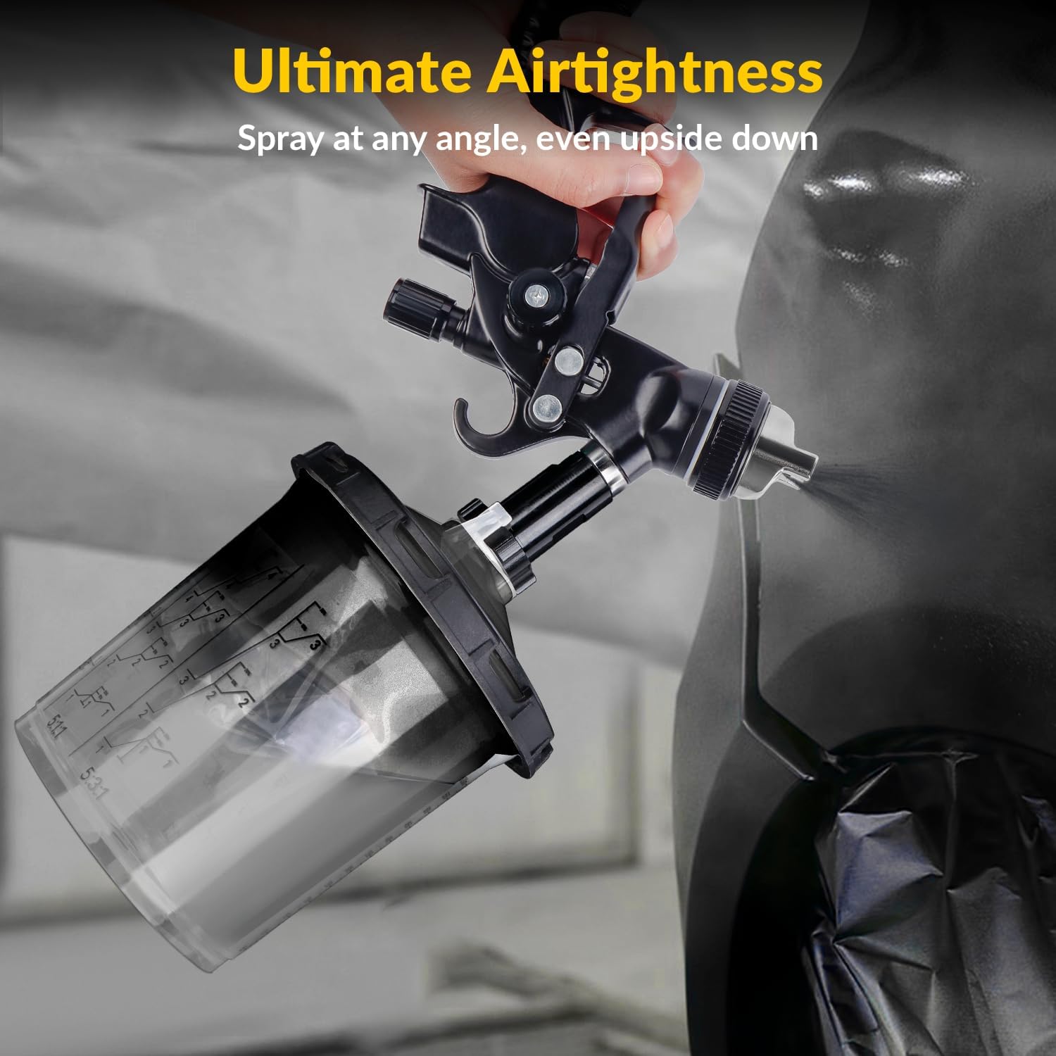 - 360° Spray At Any Angle: The excellent sealing of the paint cup system allows you to spray at any angle, even upside down, ensuring that every drop is used without waste. Ideal for spraying automotive, boats, aerospace, furniture, home, crafts