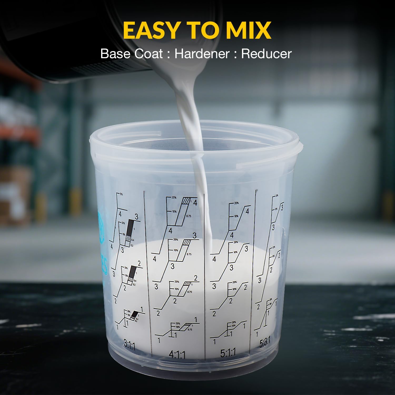 - Mix, Spray, And Store-All In One: The YUZES spray gun cups streamlines mixing, spraying, refilling, and storing. Featuring measuring lines for easy mixing directly in the cup. No cleaning needed - just replace the liner. Seal unused paint with the cup plug for future use. Save on paint, cleaning solvents, labor, and time costs with this convenient system.