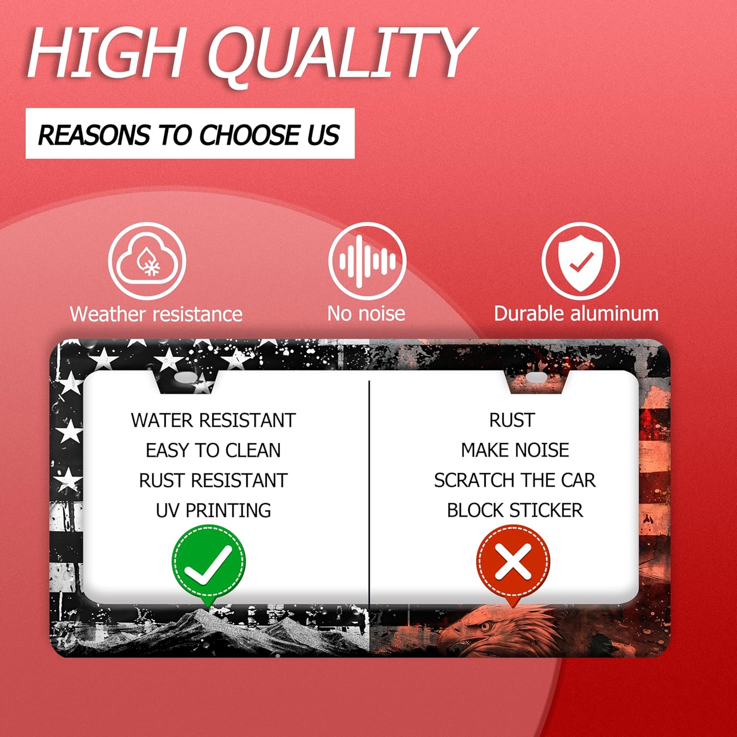 American Flag Eagle Mountains License Plate Frame Funny License Plate Holder Stainless Steel Accessories Cars Decor with 2 Holes Screws Fits Standard Us Ca Vehicles License Plate Frames 12.2 X 6 Inch