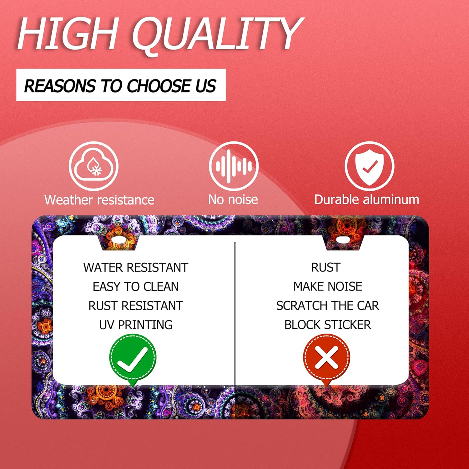 - 【Excellent Printing Concept】Use Advanced Digital Printing Protects License Plate Frames ,Whether It'S A Car Wash, Heavy Rain Or Hot Weather, It Still Looks Brand New,Let Your Car Still Be Unique And Stylish While Driving On The Road.