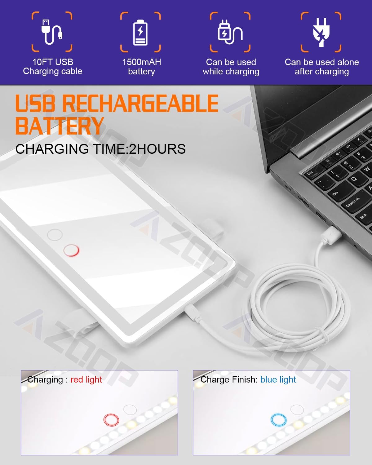 - Rechargeable Car Mirror Vanity - AZQOP car visor mirror is equipped with a built-in 1500MAH lithium battery and a type-c charging port design, which can be charged through computers, mobile power, and socket and etc. Convenient and fast charging.