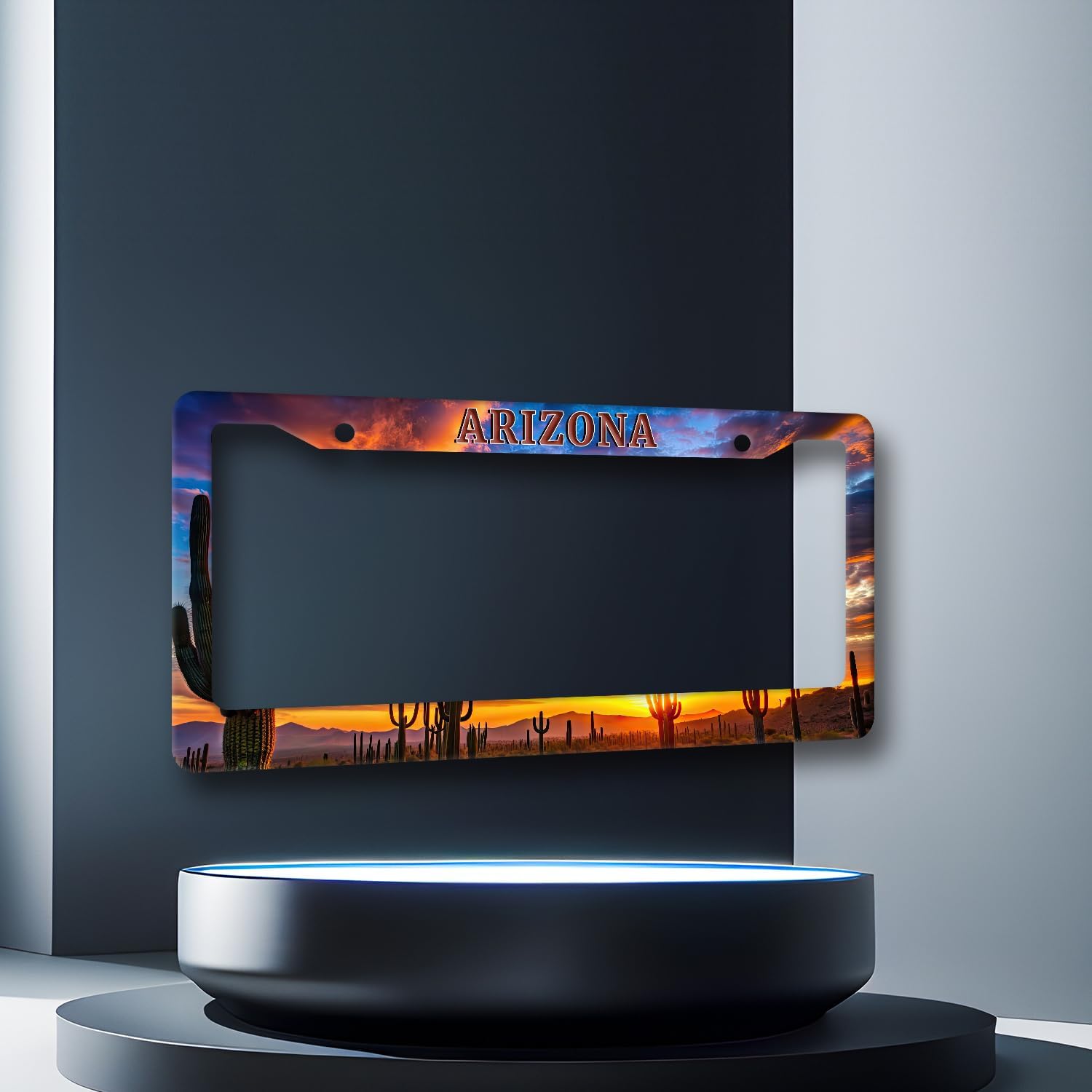Arizona State Flag License Plate Frame Sunset Desert Cactus License Plate Holder Stainless Steel Funny Design with 2 Holes and Screws 12.3" x 6.3"