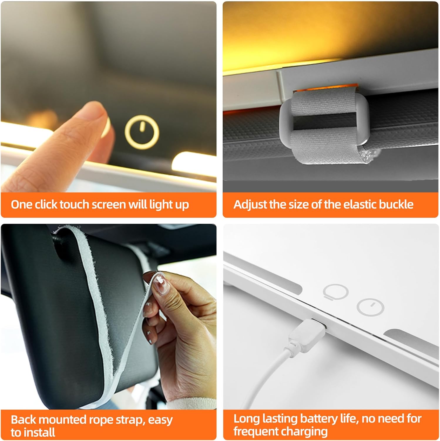 - USB POWER AND BUILT-IN LITHIUM BATTERY: This car visor mirror with light is USB powered, which can be charged by car, socket, computer, mobile power, so that you can freely use your car detailing mirror anytime and anywhere.