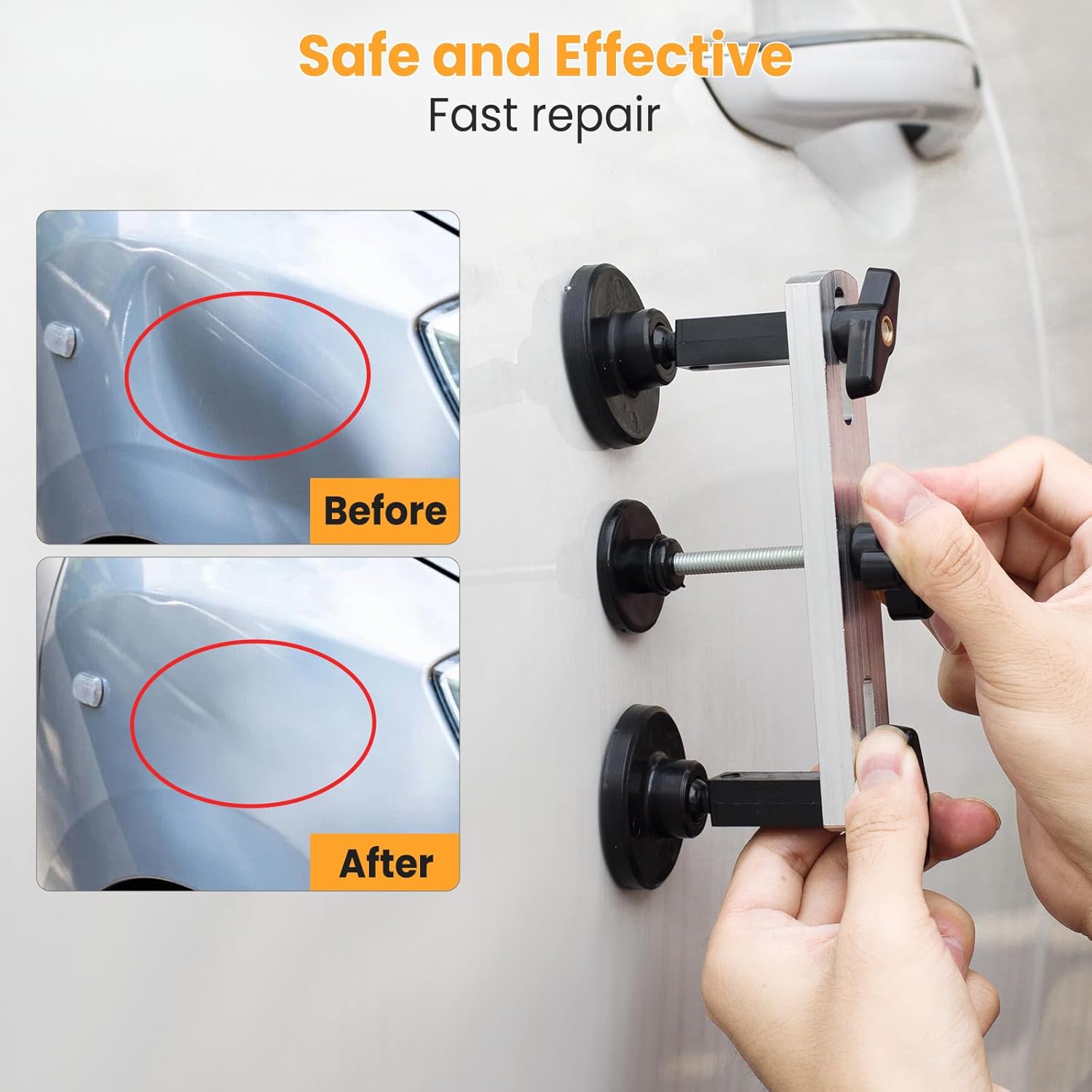 - Save Time & Money on Repairs: Avoid costly trips to auto body shops! This dent puller kit lets you remove dents at home in minutes—no paint damage, no professional skills required. It's the perfect solution for dings, hail damage, and minor dents —saving you both time and money.
