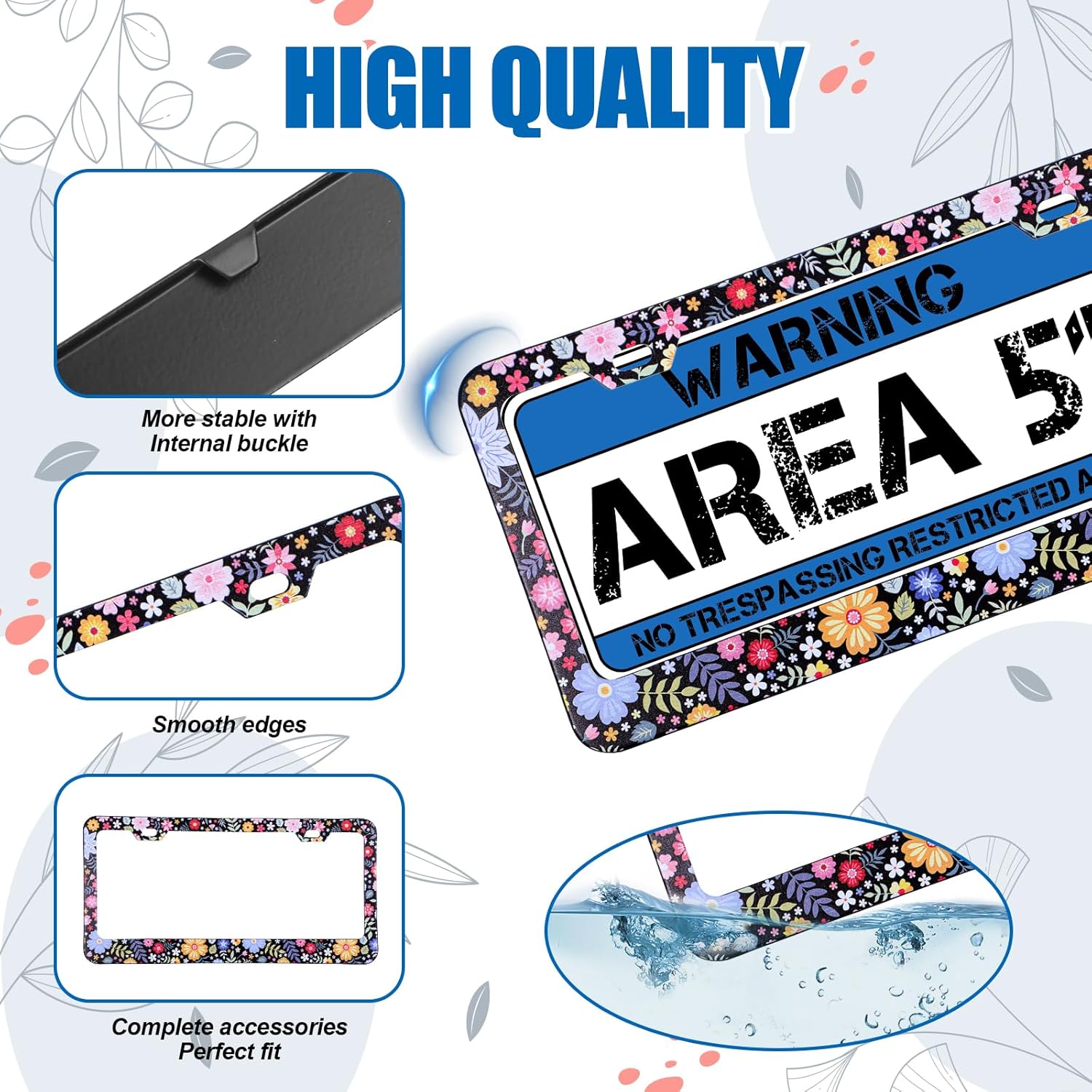 - Unique Design: The tag frame for license plate adopts a beautiful flower pattern design, making your license plate frame stand out instantly and become a beautiful scenery on the road. This license plate frame holder adopts a narrow frame design to ensure that all license plate details are clearly visible, improve clarity and meet regulatory requirements.
