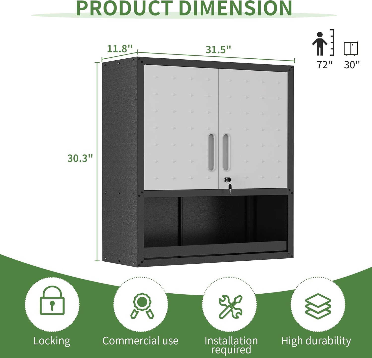 - Multi-scene Use: Wall cabinet is suitable for home, garage, warehouse, kitchen, tool room, especially for garage and tool room, for you to place tools and daily necessities to provide sufficient safe storage space, keep the room clean.